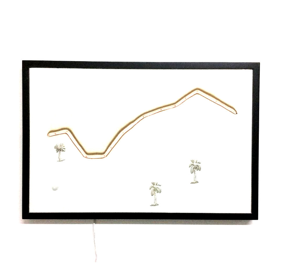 Las obras están conformadas por piezas modeladas de palmas de cera y frailejones, plantas icono del paisaje que, por las consecuencias de explotación minera, se consideran como especies en riesgo de extinción. El trabajo busca esas relaciones entre paisaje-economía y construye una imagen que considero un tipo de paisaje de economía real.
